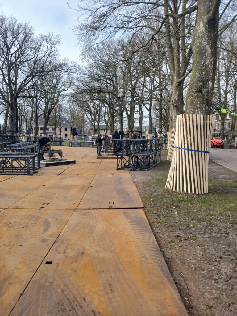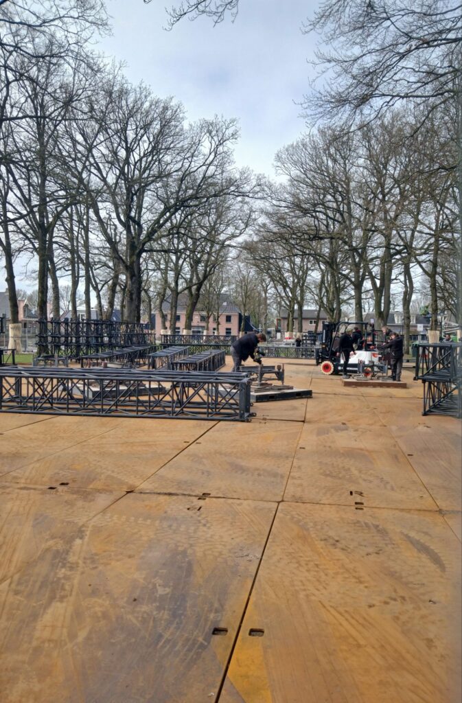 Deel van het podium staat er ook al,het schiet aardig op.